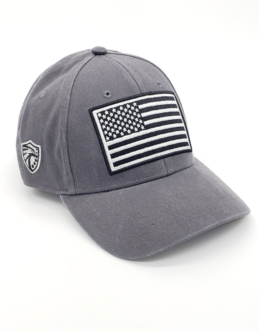 We are pleased to release our “Proud American” series of low profile garment washed twill caps with embroidered flag patch on front of crown and Defender Gear logo embroidered on the side.  The cap is manufactured by The Game® company.